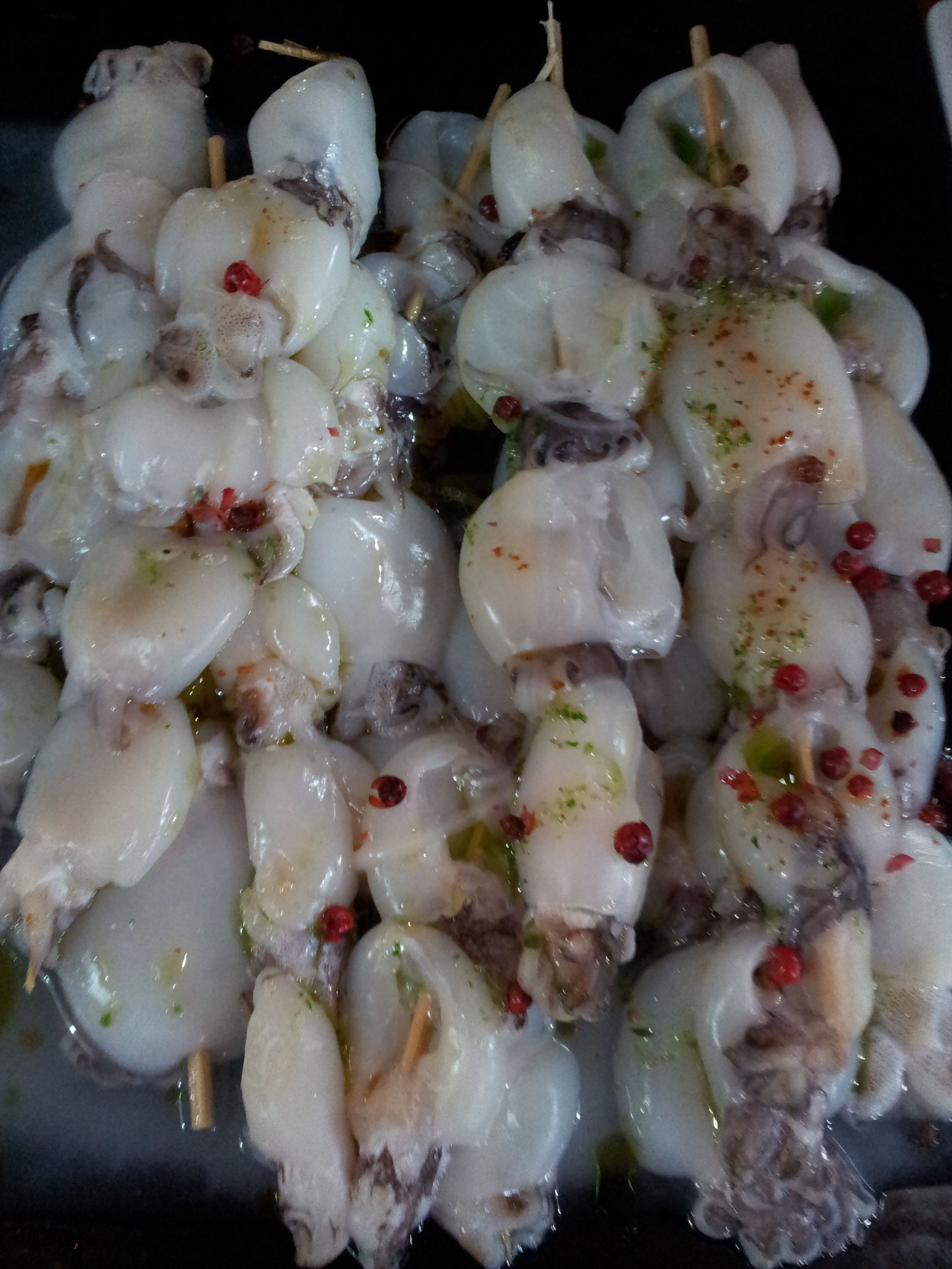 This is a busy modern bar selling a range of imaginative tapas. I started with a squid brochette which looked great on the skewer but shrank to nothing once grilled and was a bit salty for my taste (B). The accompanying glass of local Txacoli (a young, slightly bitter white wine that should be poured from a height to aerate it) was also rather disappointing (C).